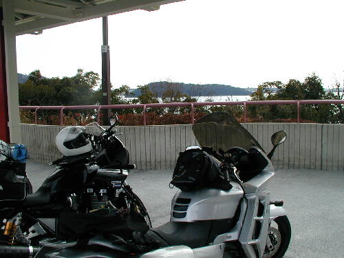 | 浜名湖SAでのワンショット。浜名湖をバックにXJRR氏の愛車とFJRです。 |