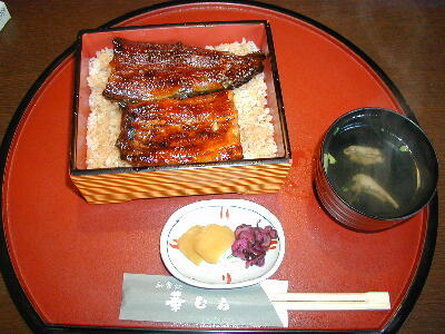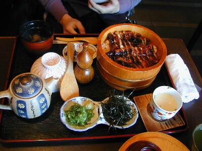 | 昼食の写真。浜名湖といえばやっぱり「うなぎ」。「ひつまぶし」の写真です。 |