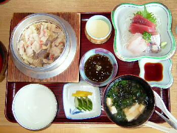 釜飯はさしみ付を頼みました。結構おいしかったです。